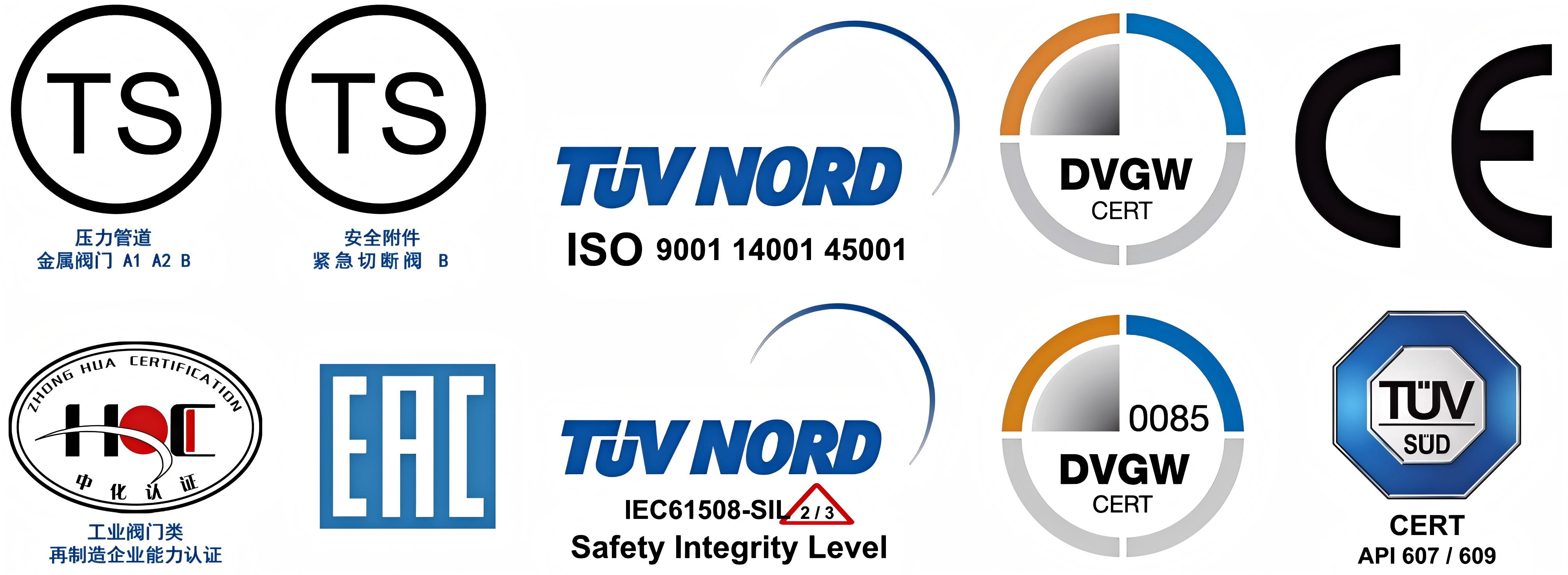 公司对标国际一流设计、制造、管理标准,通过了德国TUV-ISO9001、14001、45001的质量、环境、职业健康管理体系认证和德国DVGW-QS质量管理体系认证。切断阀、调压阀、调节阀、压缩机防喘阀产品全系通过了德国 DVGW-CE 认证,德国TUV-SIL2、SIL3 功能安全等级认证、EAC欧亚经济联盟认证。