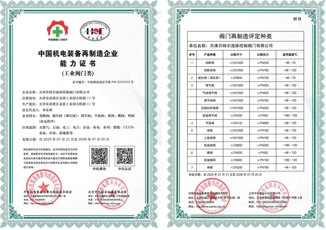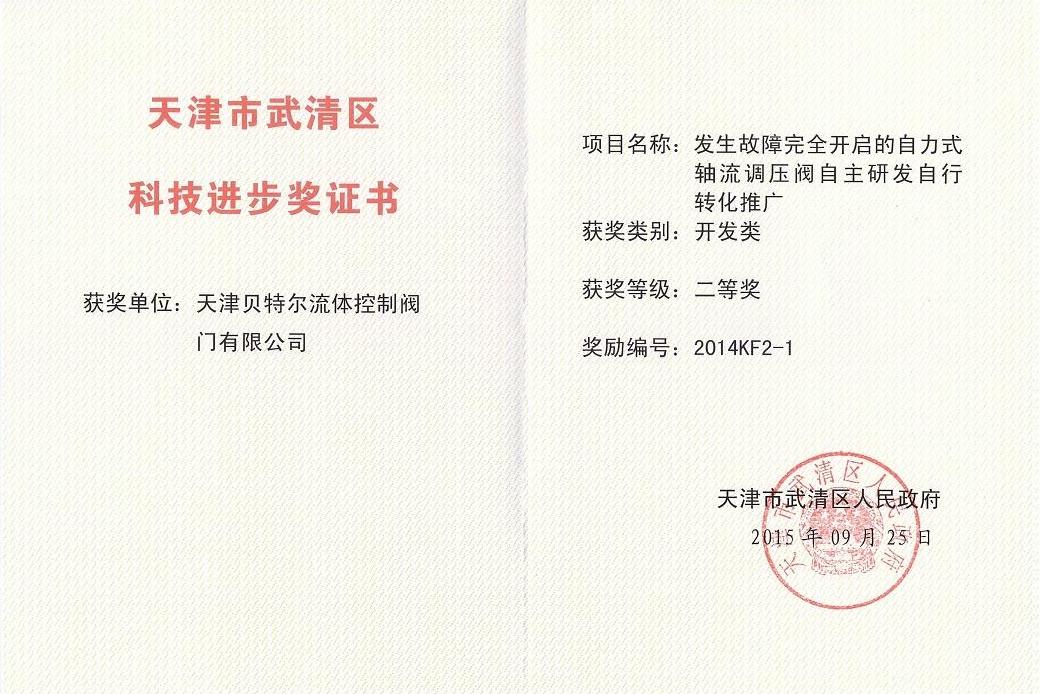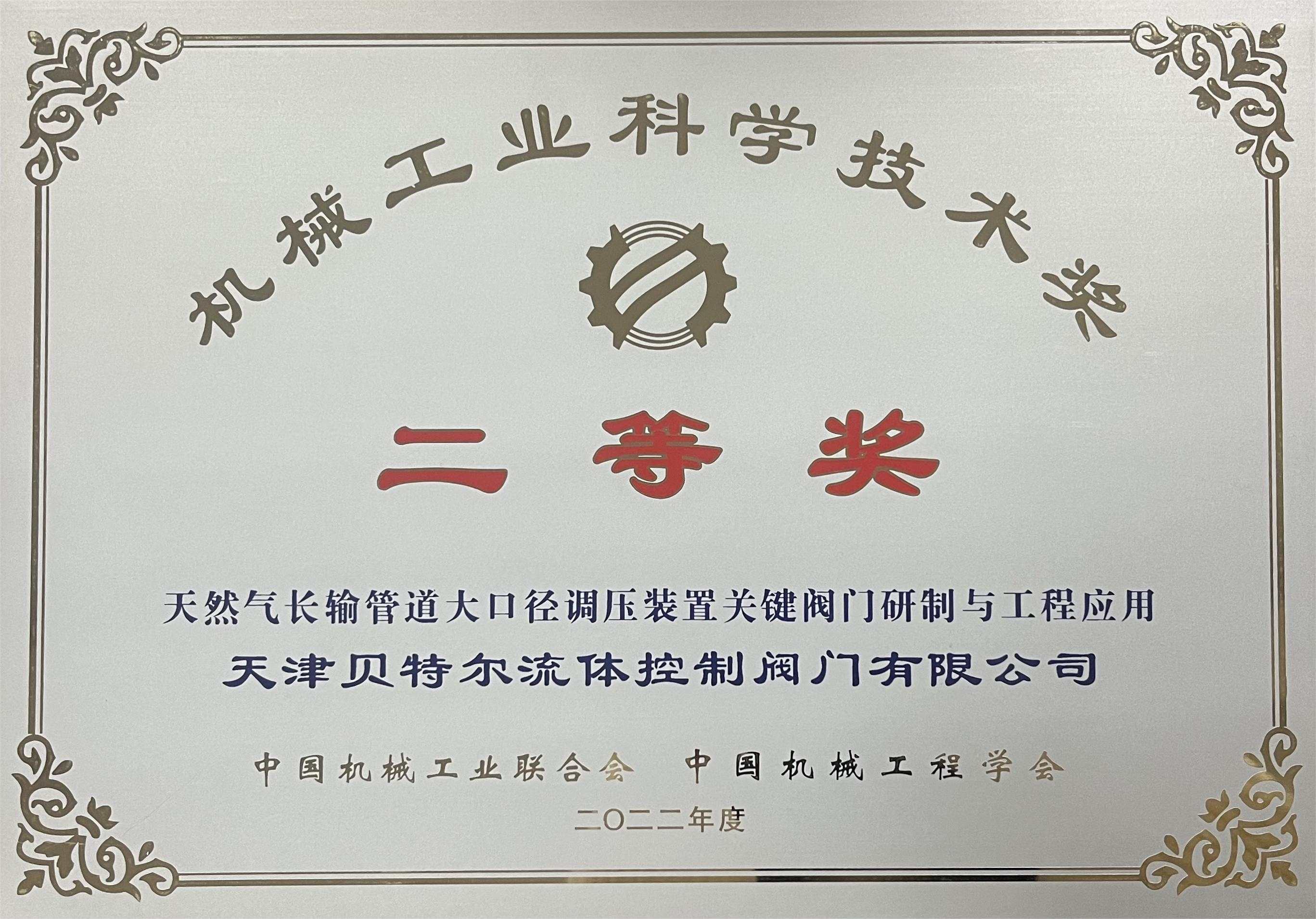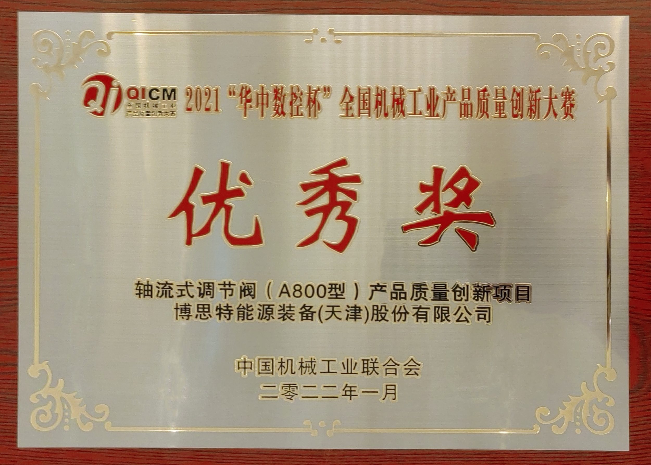 贝特尔“轴流式调节阀”获全国机械工业产品质量创新大赛优秀奖