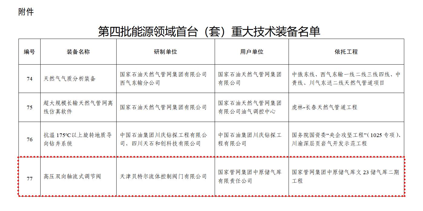 2月6日,中石油重大科技专项《油气管道关键设备国产化-调压装置关键阀门》,贝特尔公司所承担的口径DN300,压力等级CLASS900的)调压装置关键阀门成功在西气东输二线的黄陂联络压气站投产