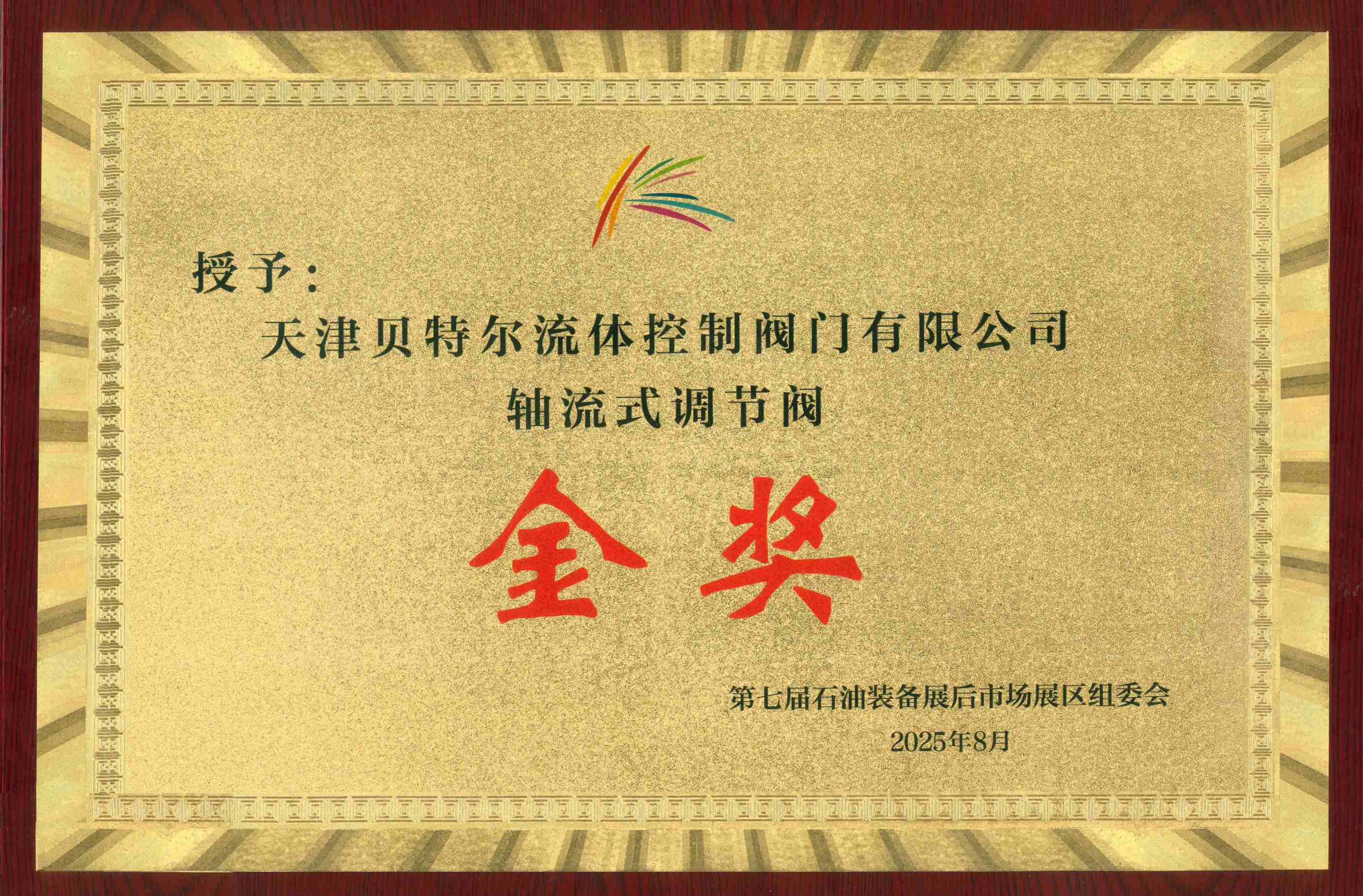 贝特尔“轴流式调节阀”荣获第七届石油装备展后市场展金奖