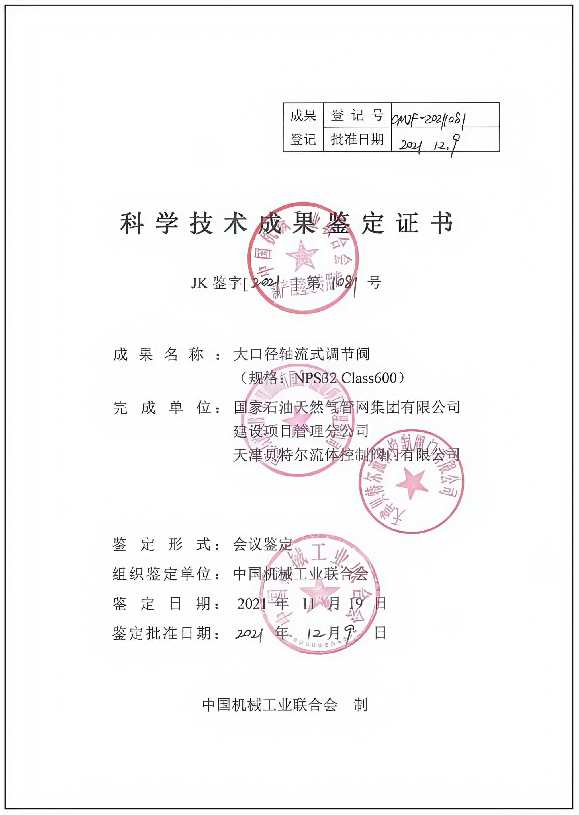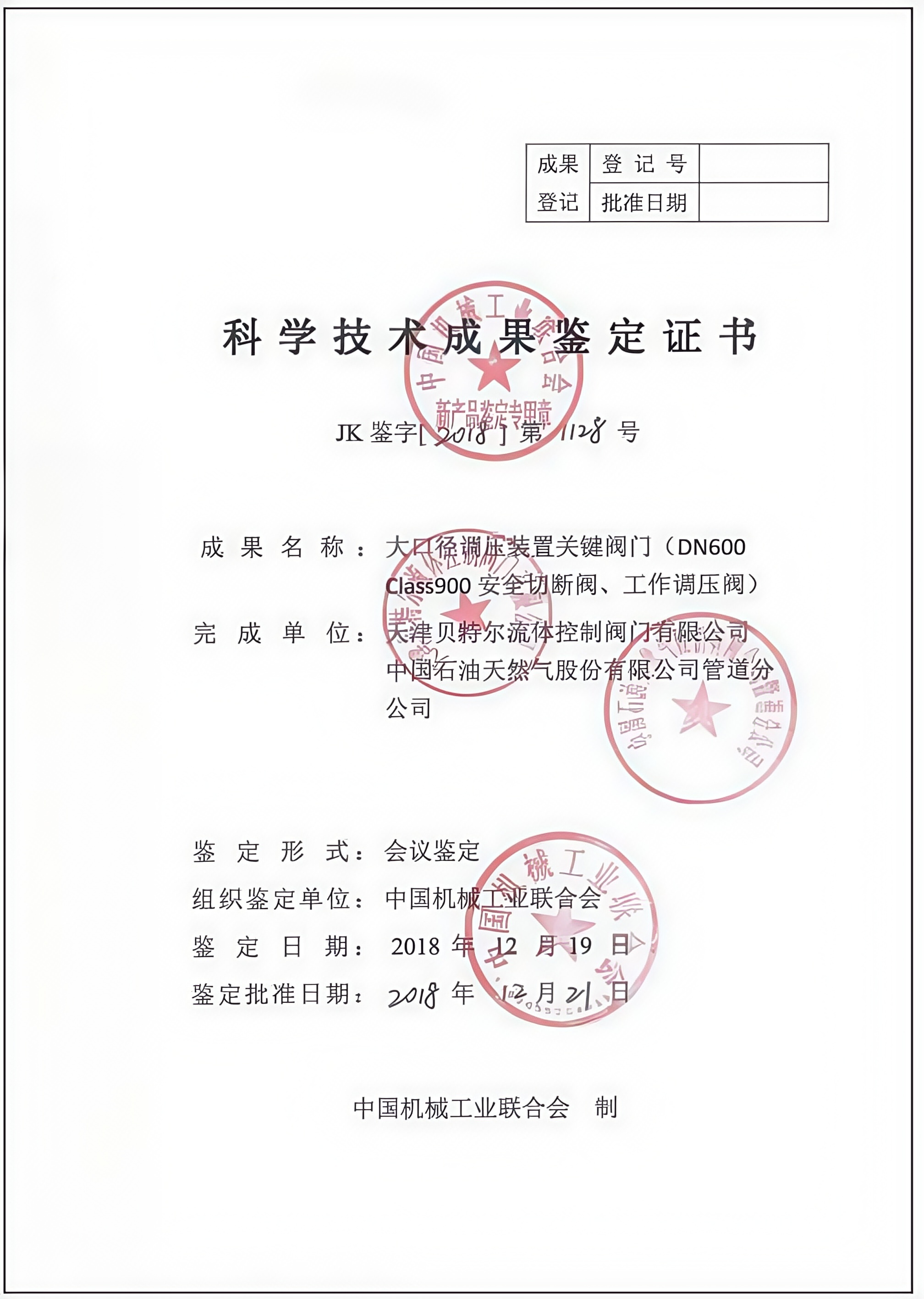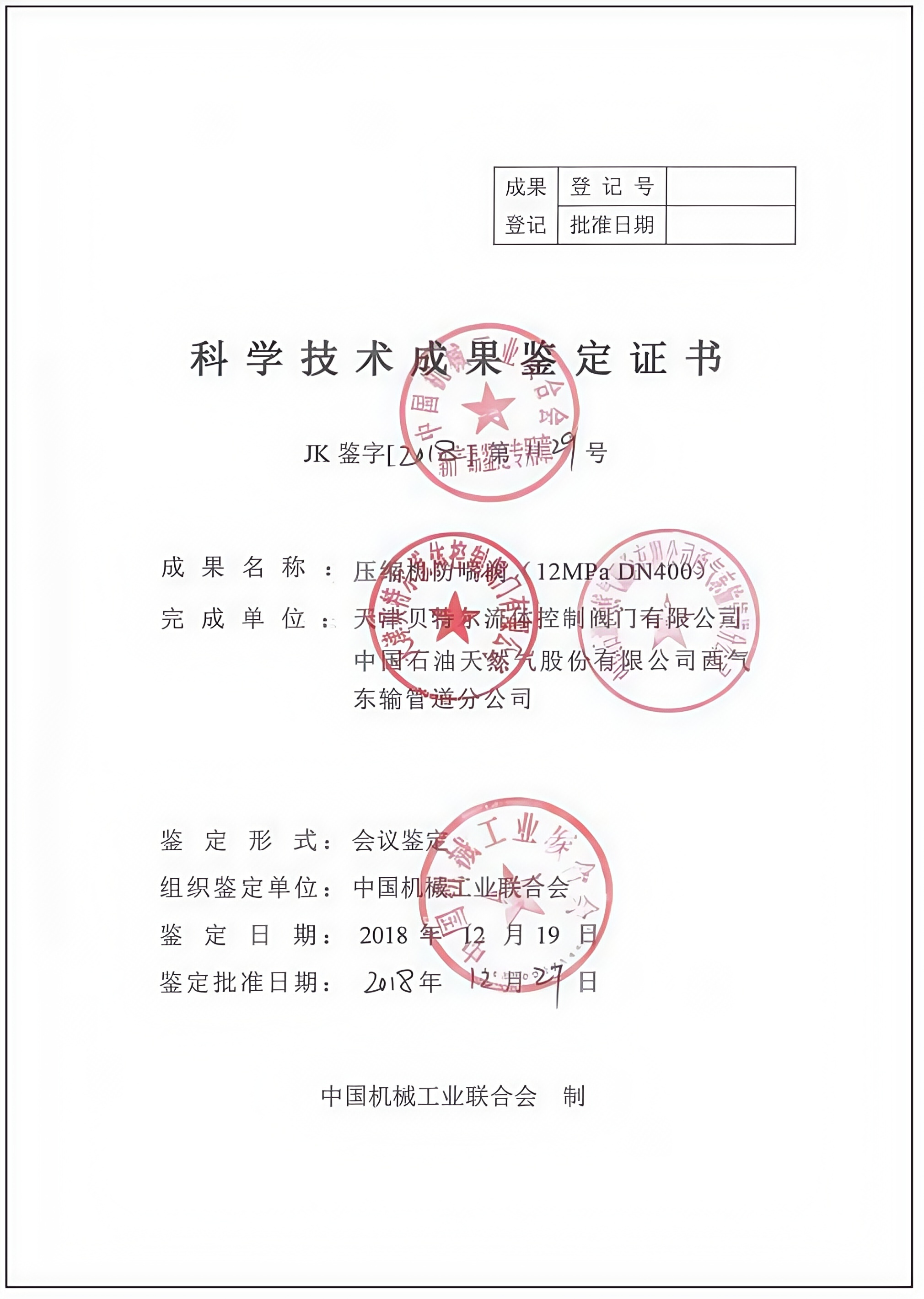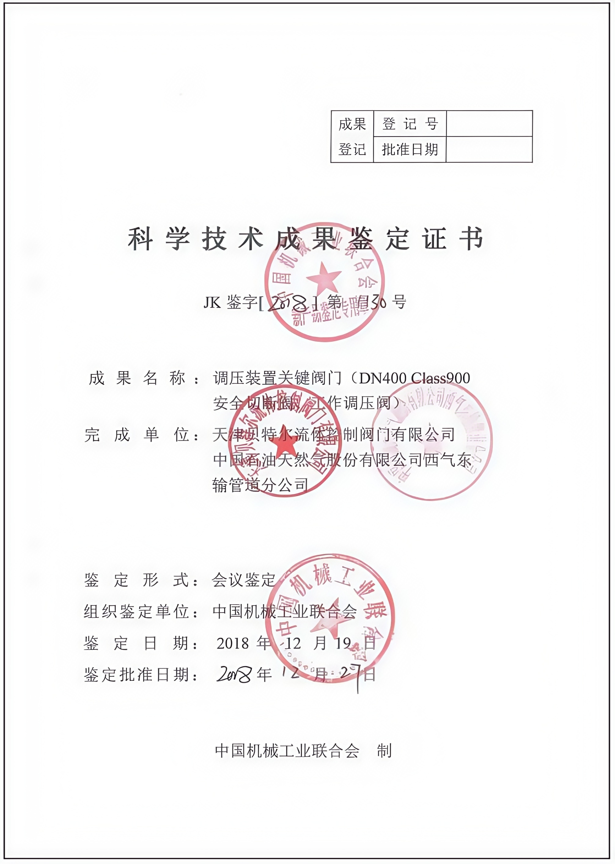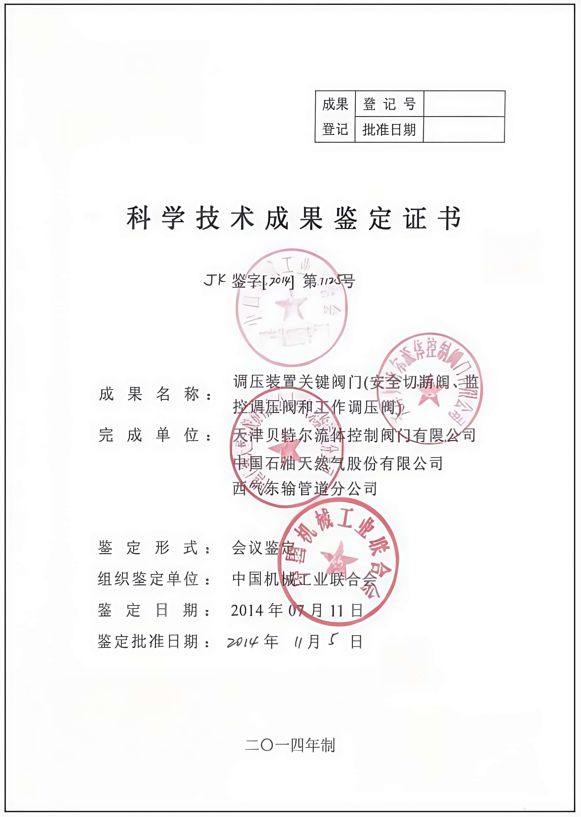 科学技术成果鉴定证书