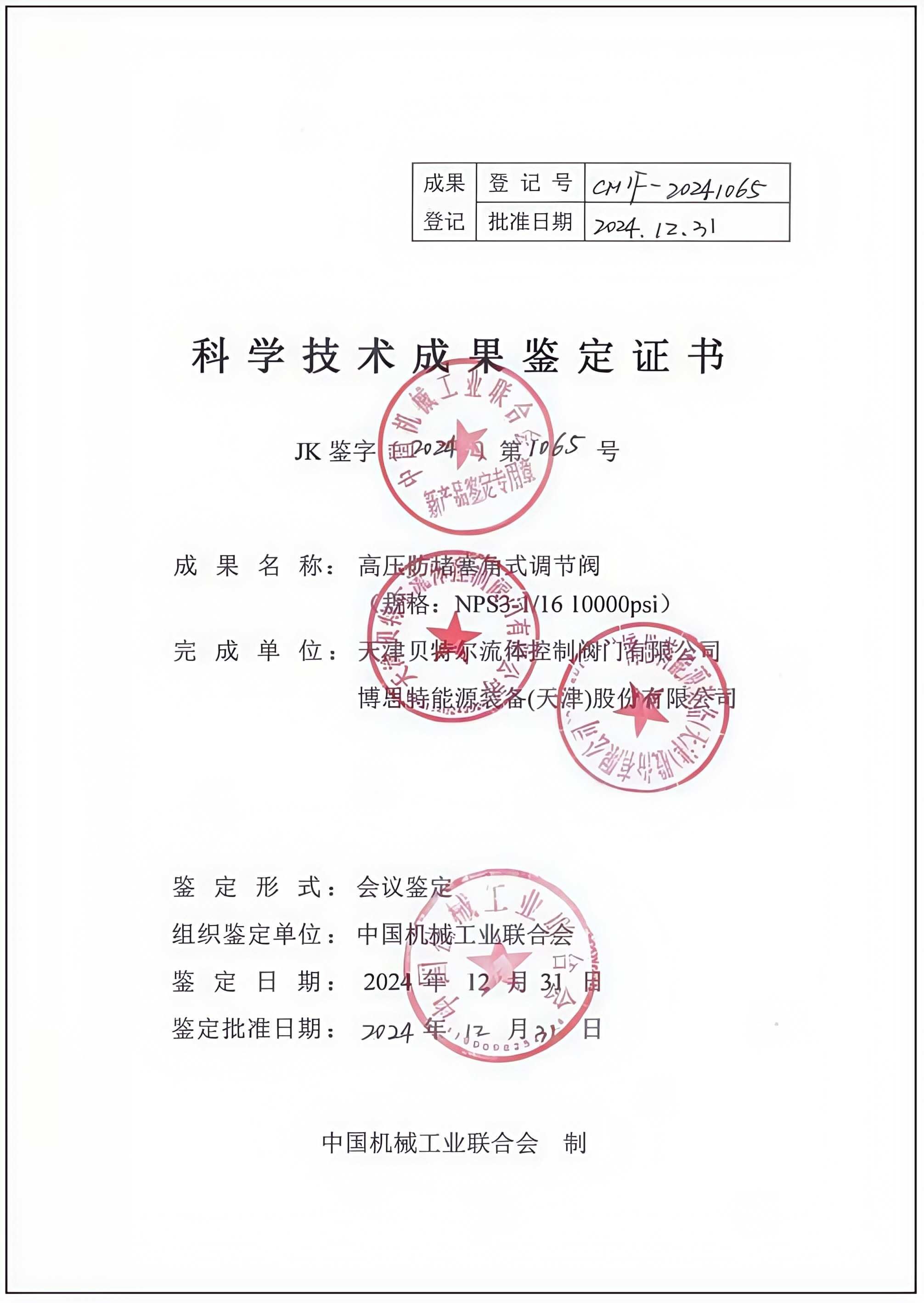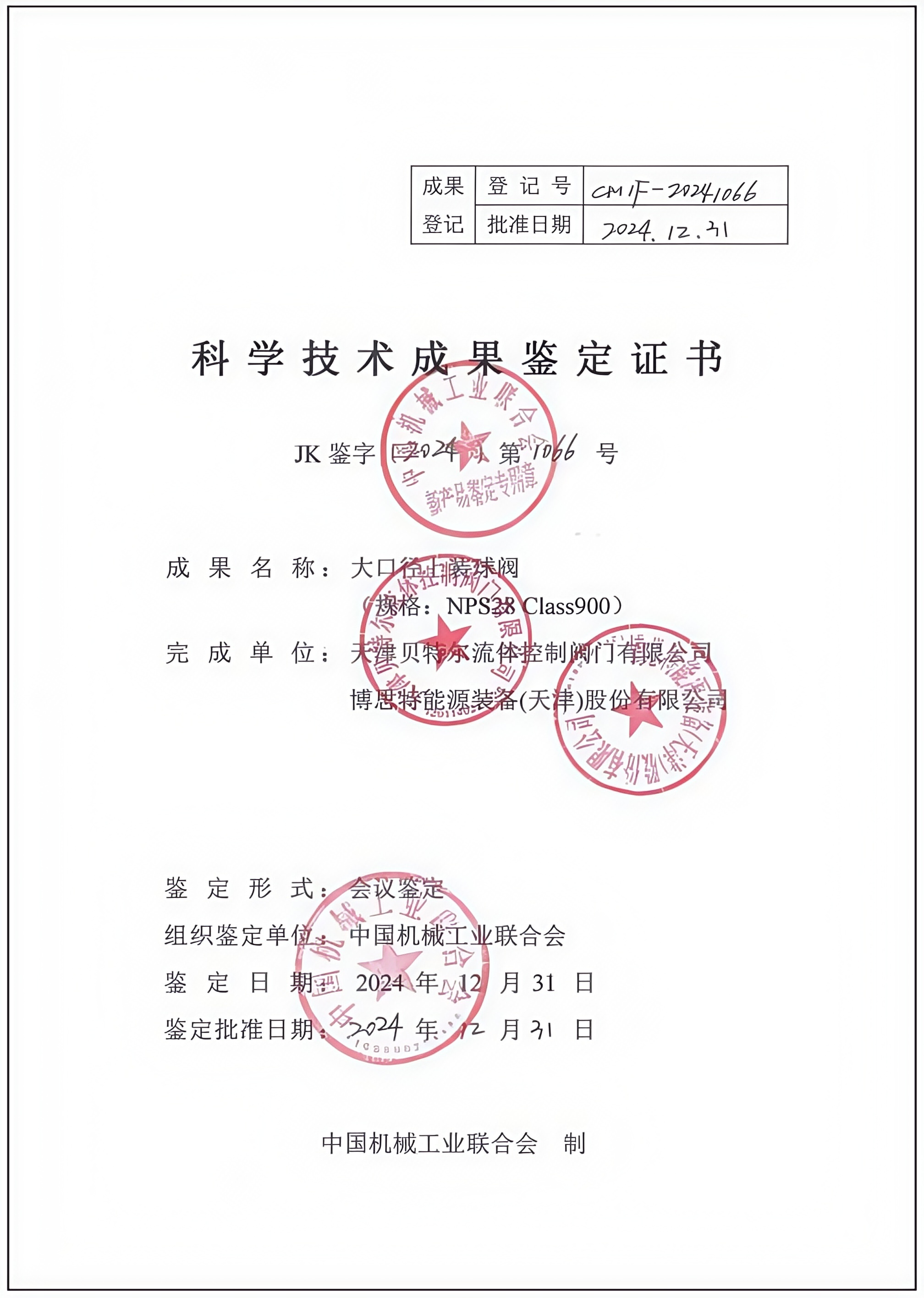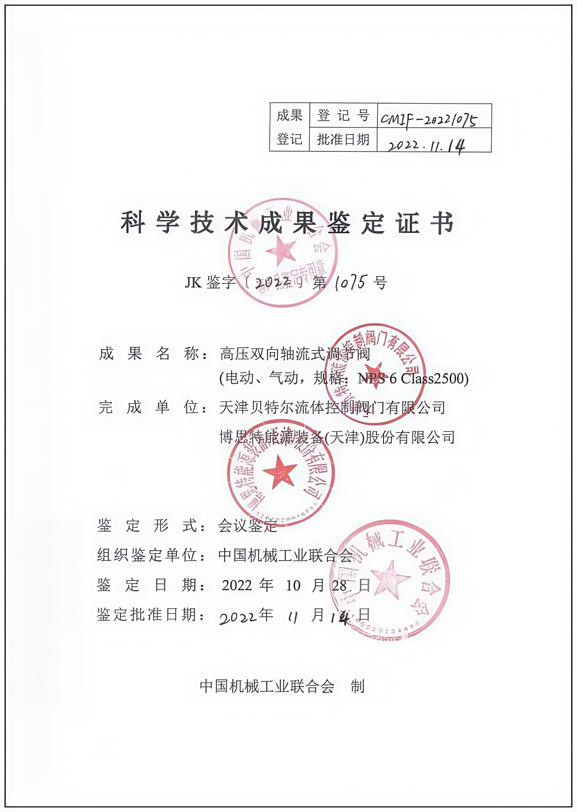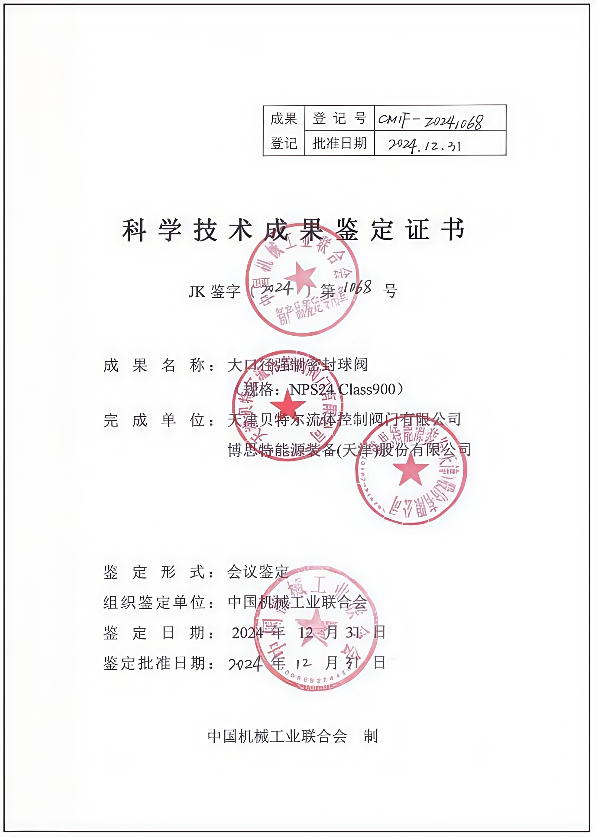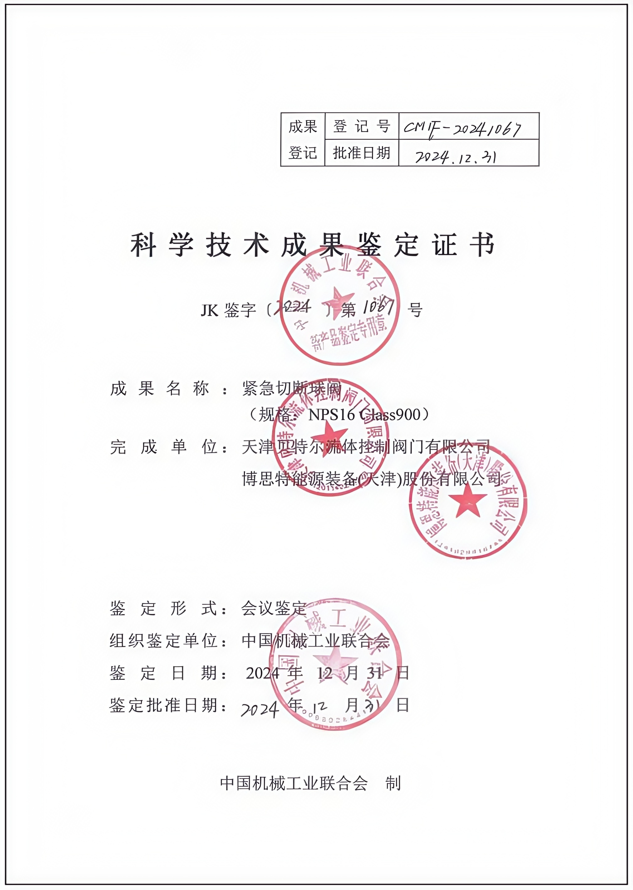 科学技术成果鉴定证书