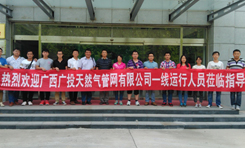 2015年8月9日,广西广投天然气管网有限公司14名一线运行及管理人员到公司考察,与公司技术人员交流了调压装置关键阀门的性能及特点,并对用户现有设备在运行中注意事项和维护解决方案做了详细探讨,从中用户对调压设备性能及维护也有了更深入的了解。 -